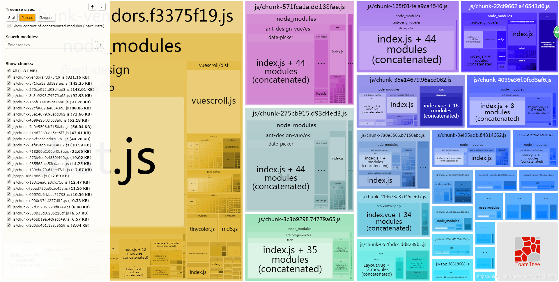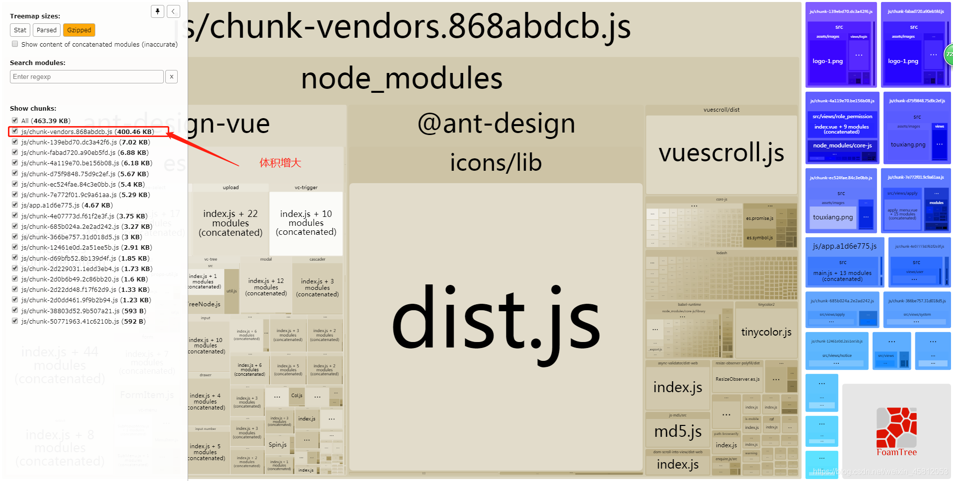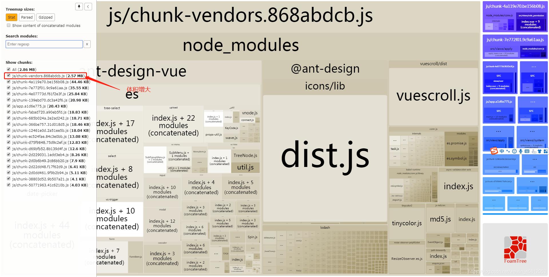 | 单.vue文件按需引入antd | vue.use 按需引入antd 组件 | stat | 3.8MB | 2.86MB | parsed | 1.81MB | 1.45MB | gzip | 581.94kb | 463.39kb | 区别 | 单个文件体积大,全局文件小,总体积大 | 单个文件体积小,全局文件大,总体积小 |