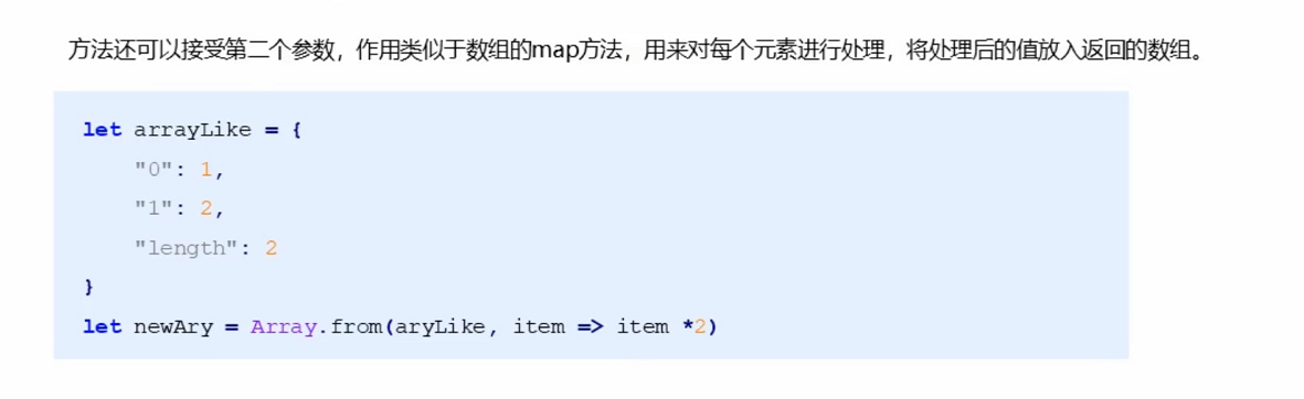 var ary = Array.from(arrayLike, item => item * 2)