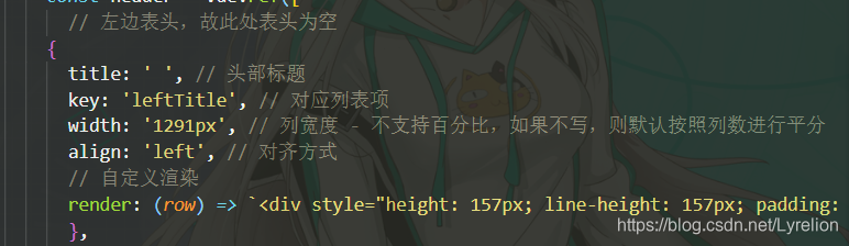 设置完 :row-height 之后,再对单行和间隔行进行高度设置,就可还原设计稿 - wrapperContent: { height: '157px', background: 'transparent', paddingLeft: '80px', },