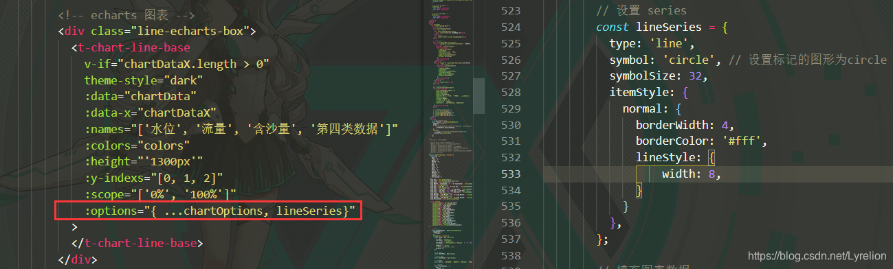 设置折线点的样式,涉及到了修改 series,这个组件不支持直接在 options里写 series,最后是这么改的,你懂我意思吧?