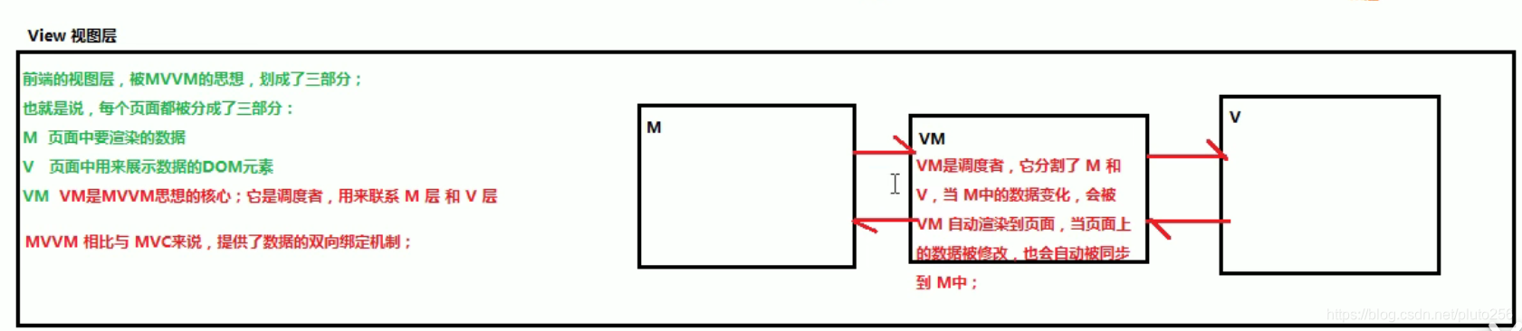 - MVVM是前端视图层的概念,主要关注于 视图层分离,也就是说:MVVM把前端的视图层,分为了 三部分 Model, View , VM ViewModel