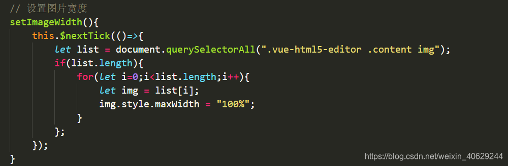let list = document.querySelectorAll(".vue-html5-editor .content img");