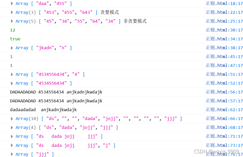 console.log(str.match(/(\d)+/g)); //Array [ "4534556434" ] 全局执行的话 结果会一次性返回