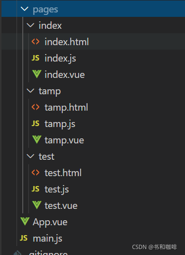 文件夹下面的每一个都是单独的页面,然后有不同的 html,js,vue。
