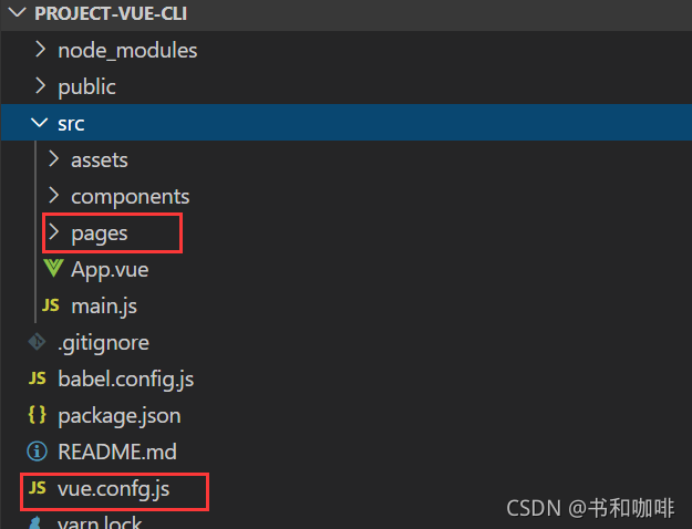 在package.json 文件同项目下创建新的 js 文件(vue.config.js),然后在src文件下新建pages文件夹: