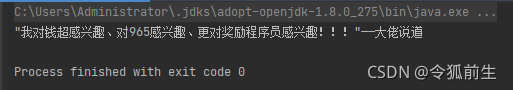 String words = "\"我对钱没兴趣、对996感兴趣、更对压榨程序员感兴趣!!!\"——大佬说道";
