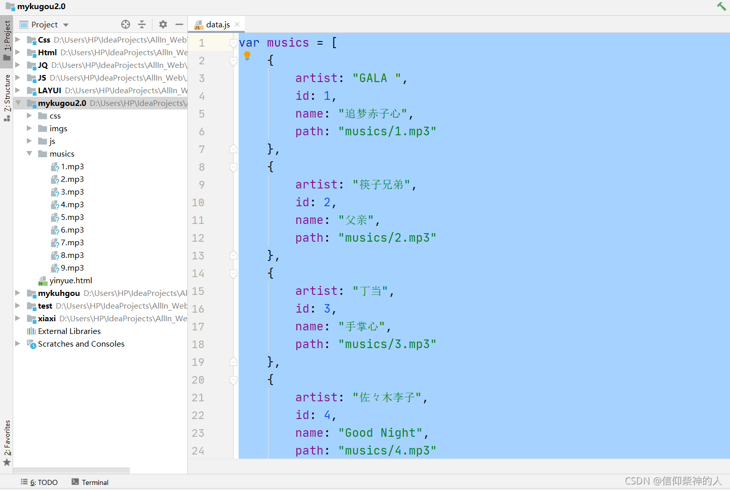 网页样式布局:大家可以自己设置好看的字体、颜色样式。另外在设置background: url("../imgs/play-default.png") no-repeat;时注意:url里面的路径要写两个点表示退出当前目录,到根目录。还有背景要设置no-repeat(不平铺)。在用绝对定位时要遵守子绝父相原则还要注意设置z-index属性。