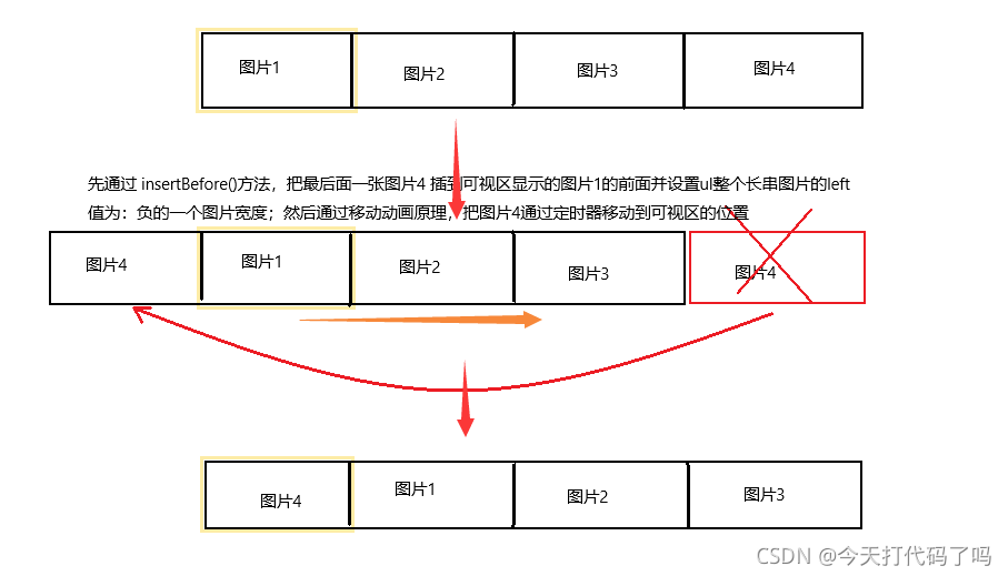 ul.insertBefore(ul.lastElementChild, ul.children[0]); //然后通过insertBefore方法,把最后一个li节点,插入到当前显示图片(也就是第一个)的li节点前面
