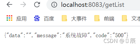 { ?? ?data: '', ?? ?message:'系统故障' ?? ?code: 500 }