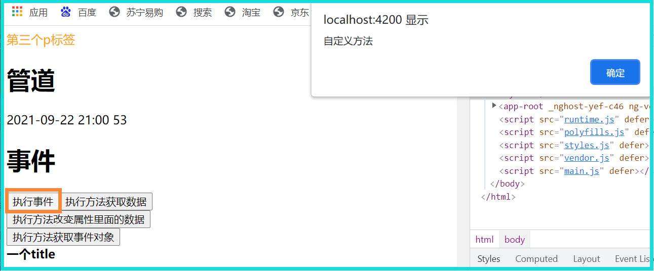 <button (click) = "runEvent($event)">执行方法获取事件对象</button>