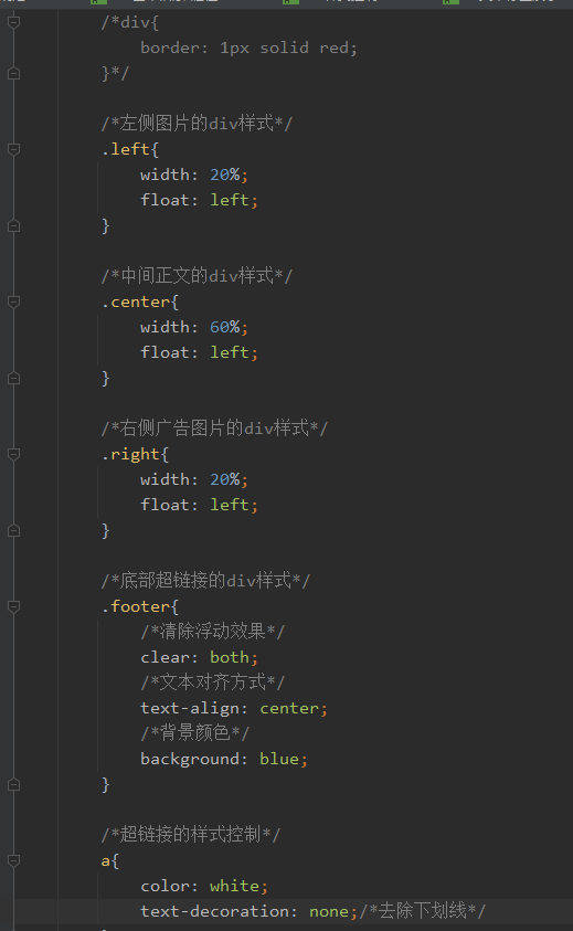 主体部分分为三列,而div是独占一行的,所以想要使用div布局,就还需要加入浮动 属性