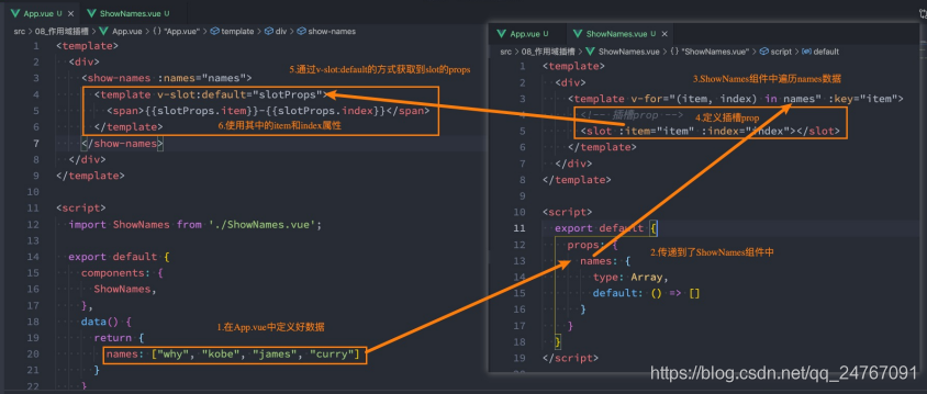 ? ? ? ? 这个Vue给我们提供了作用域插槽;