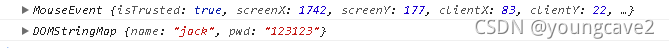 4.event.srcElement.dataset?表示按钮上绑定的数据集 (data-name和data-pwd),就是接收值的地方