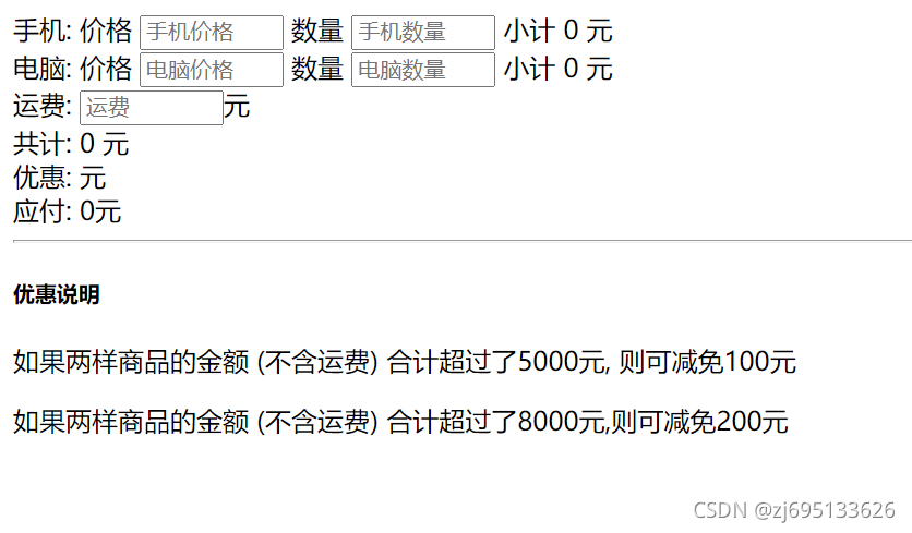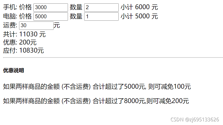 <input type="number" placeholder="运费" v-model.number="freight" />元<br />