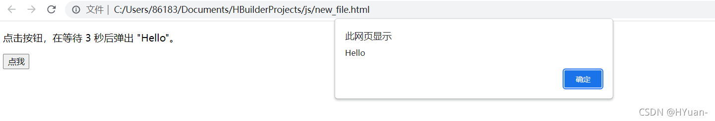 <p>点击按钮,在等待 3 秒后弹出 "Hello"。</p>