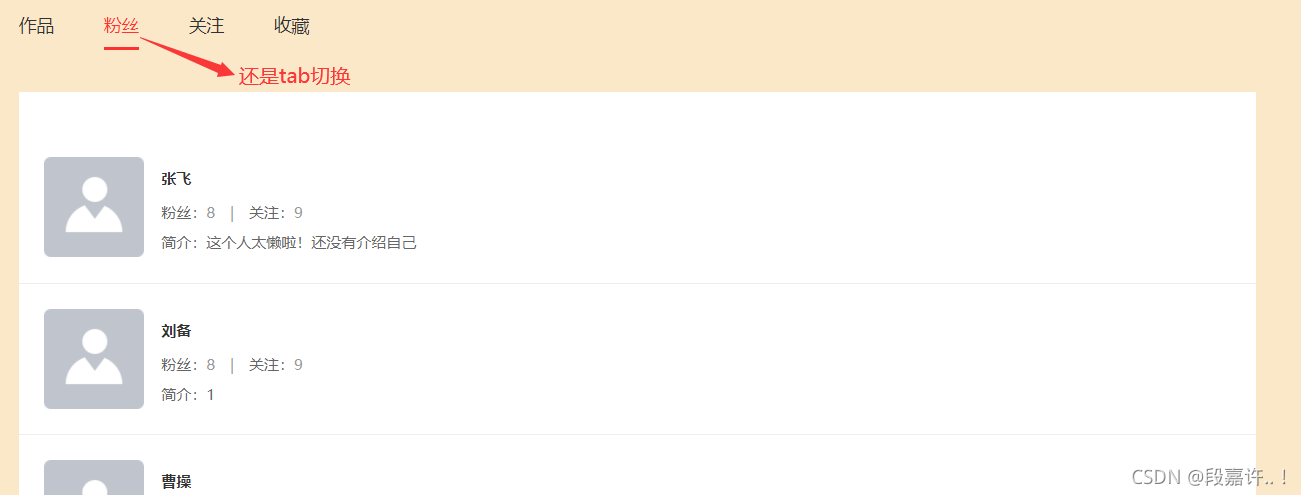 <el-tab-pane label="粉丝" name="fans"></el-tab-pane>