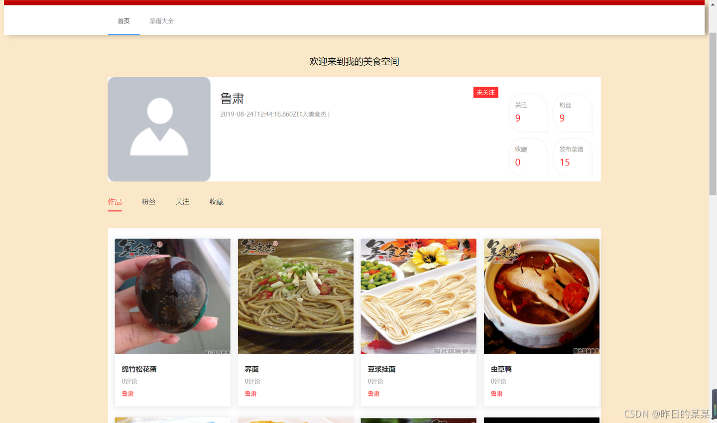 2.点击 作品? 粉丝? 关注? 收藏 进行数据加载和显示