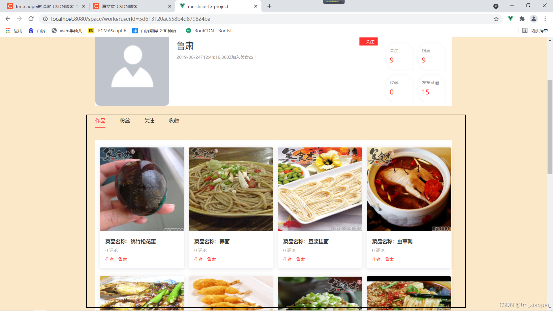说明:作品和收藏结构相同,粉丝和关注结构相同,因此可以复用统一模板。
