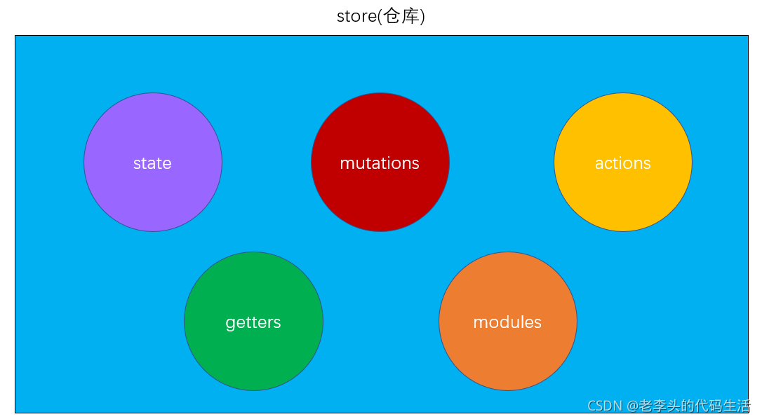 每个 Vuex 应用的核心 store(仓库), 包含5个核心概念