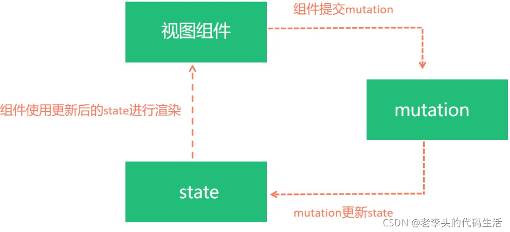 mutations函数内, 只能写同步代码, 调试工具可追踪变化过程