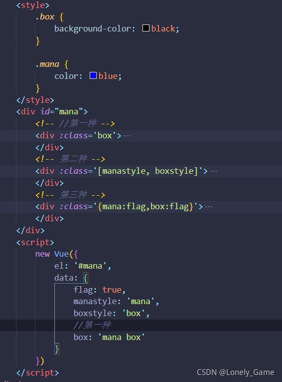 设置了这个属性的 不会变量的替换 相应的类名会是nihao 而不是在data设置的数据