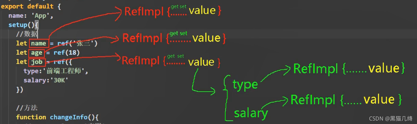 如果想对 ref 包装的数据进行处理,需要对数据.value后再操作,那么对于包装后的对象数据类型数据,也应当需要.value拿到具体对象数据。在Vue2中我们知道,即使一个对象中嵌套了多个对象,Vue都能通过循环遍历,从外到最深处设置响应式。
