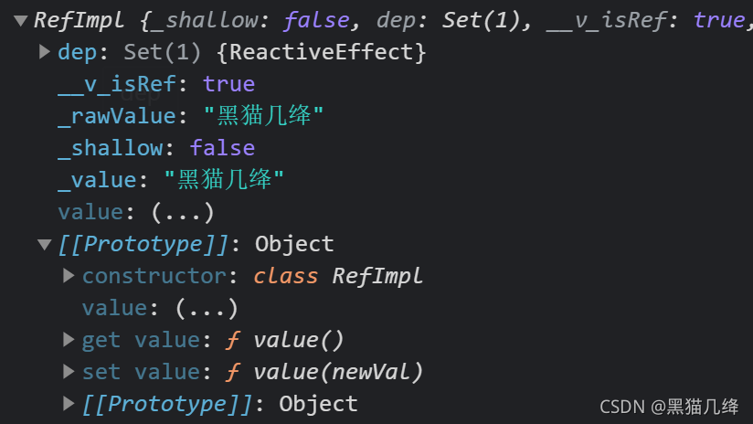 ?我们将刚刚打印的内容展开来看,可以清晰的看到被包装的name属性是存在get和set的。如果想读到数据,那么就需要通过.value去获取,修改的话也需要这样。