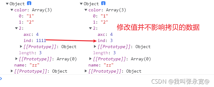 // 复杂类型拷贝的是地址,原对象地址改变,数据也改变