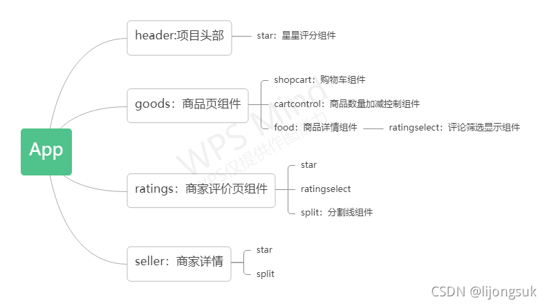 为方便各模块的复用,减少冗余,项目被拆分成组件编写,各组件关系大致如下图所示: