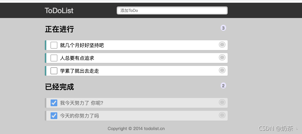 ToDoList无须注册即可使用,数据存储在用户浏览器的html5本地数据库里,是最简单最安全的待办事项列表应用!,这个项目有很多细节的地方,比如如何存储数据到本地、页面刷新如何让数据实时更新、存储数据的格式。这个是一个很典型的案例,前端的同学要好好的掌握,可以锻炼逻辑思维