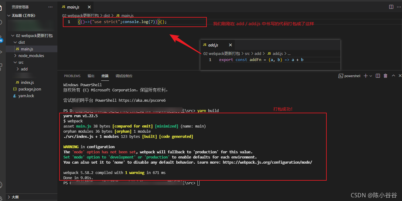步骤三:在入口处执行webpack打包命令查看结果 -- yarn build