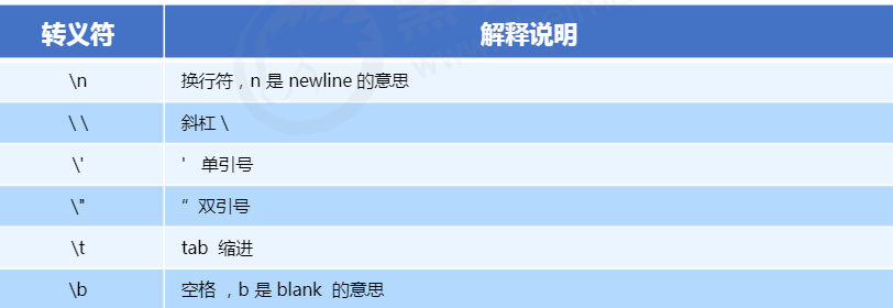使用单引号表示,也可以进行字符串引号嵌套,可以用单引号嵌套双引号或者用双引号嵌套单引号,但是不能单双引号混合。转义字符如下。