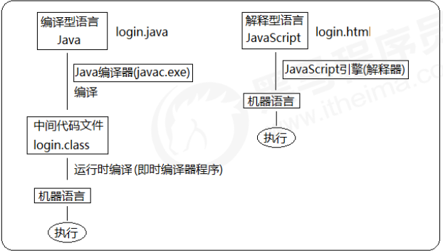 解释型语言和编译型语言。 计算机要把程序语言编译(用翻译器)成机器语言才能执行程序。 翻译器翻译的成机器语言有两种方式,一个是编译,另外一个是解释,区别在于翻译的时间点不同。 编译器是在代码执行之前进行编译,生成中间代码文件 解释器是在运行时进行及时解释,并立即执行