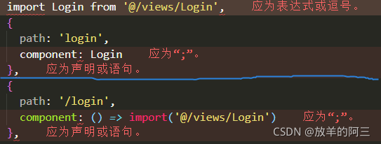 上面为最开始引入注册用法,下面为路由懒加载,懒加载减小了webpack压缩后文件的体积,需要的时候才去引用相关代码