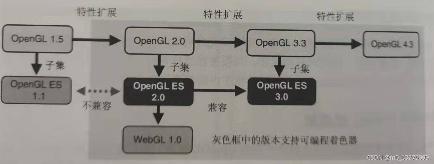 ? ? ? ? webgl是一项用来在网页上面绘制和渲染复杂三维图形,并允许用户与之进行交互的技术。它实际上是从opengl的一个特殊版本OpenGL ES 2.0中派生出来的。关系见下图(摘自WebGL 编程指南)