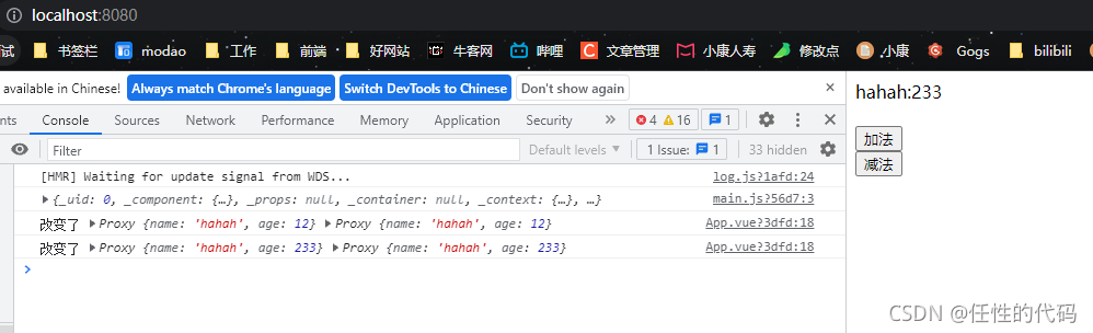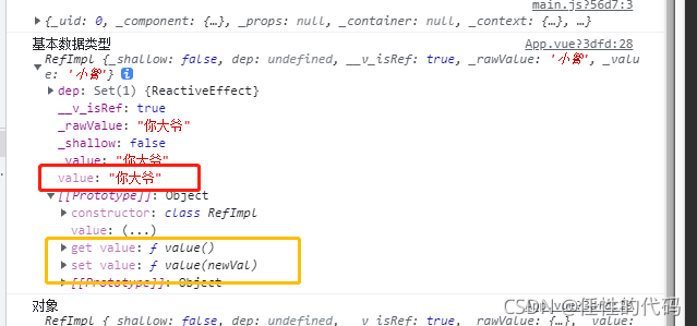 ?这里使用了get/set方法,通过ref将数据封住成一个引用对象,在这个改变这个引用对象的value值实现数据的双向绑定。所以这里的name和age是一个引用对象。