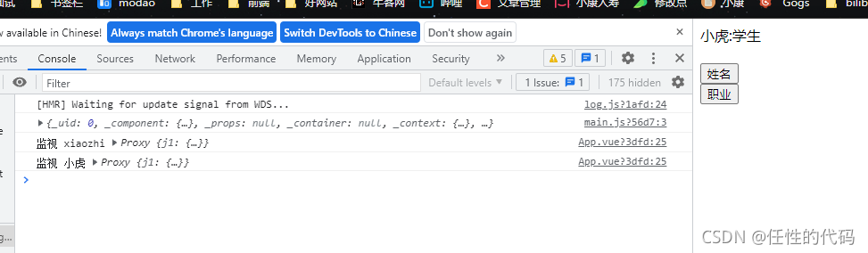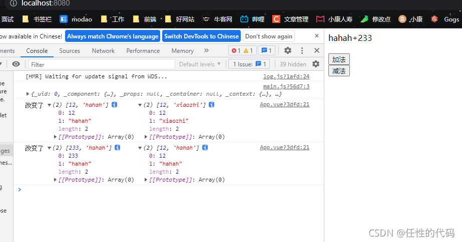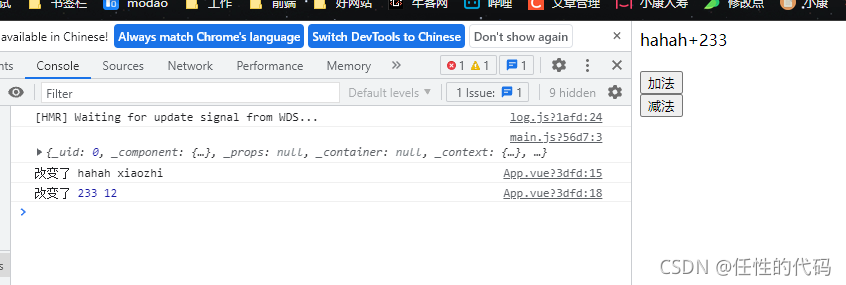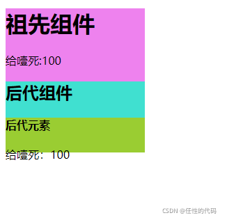 注意:祖先元素的数据和后代的数据是具有双向相应式的,同时修改一方的数据,另一方的数据也会跟着变。