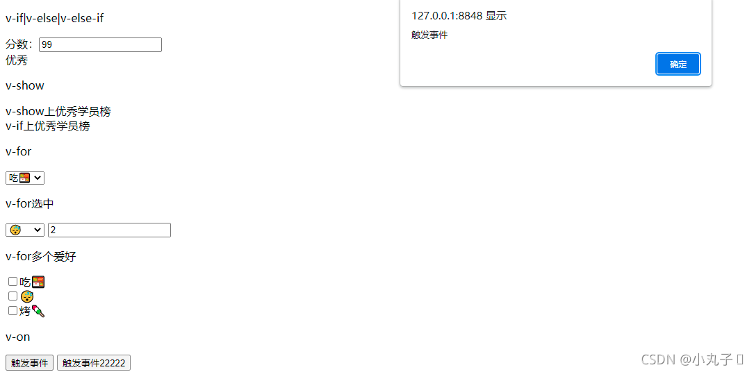 <div v-if="score>88">优秀</div>