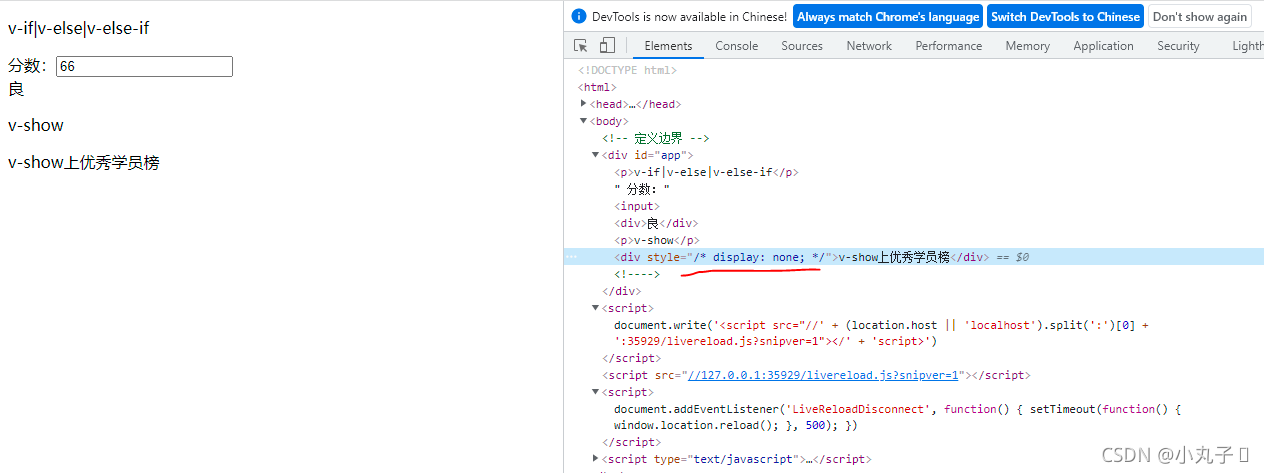 <div v-if="score>90"> v-if上优秀学员榜</div>