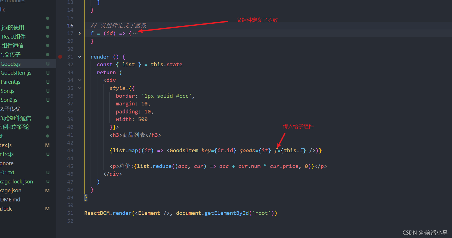 {list.map((it) => <GoodsItem key={it.id} goods={it} f={this.f} />)}