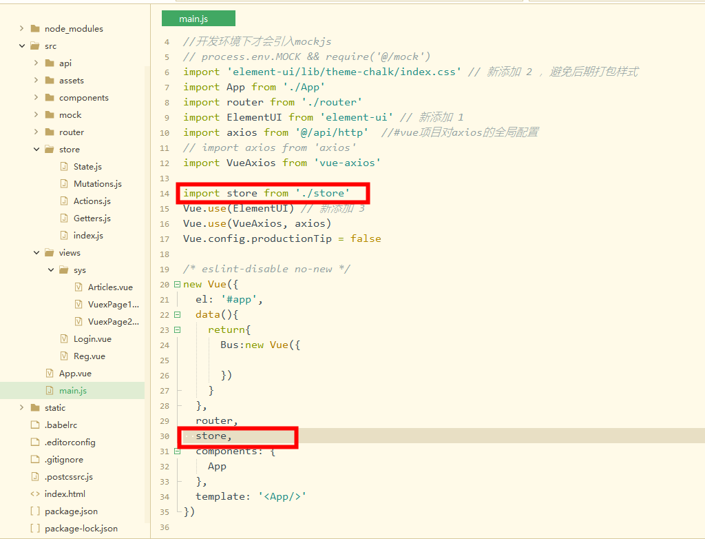 ?4?在main.js中导入并使用store实例