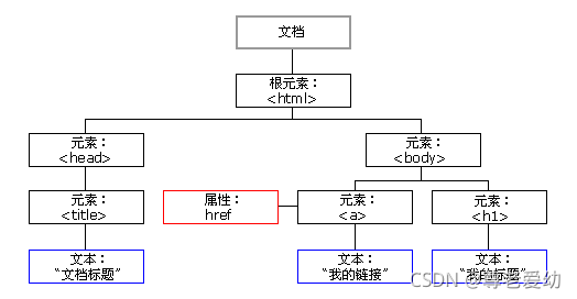 HTML DOM 把 HTML 文档呈现为带有元素、属性和文本的树结构(节点树)。