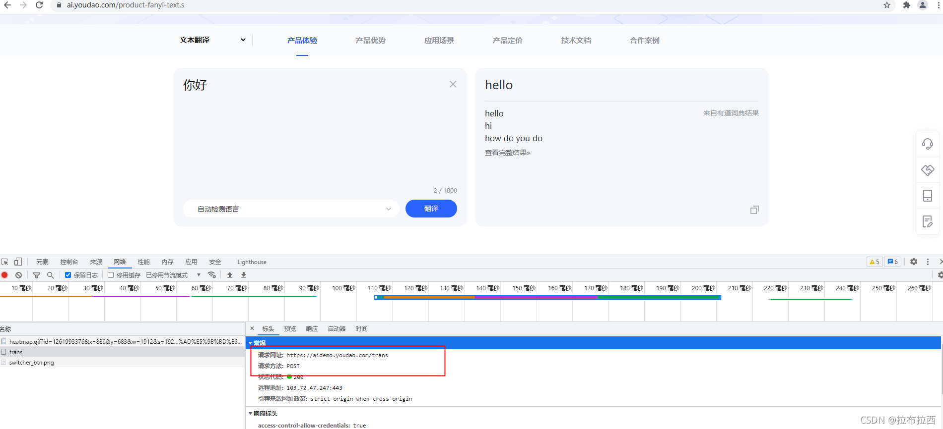 这个地方看到其他大佬都是用到了对应的密钥,本来我也弄了,后来看到有道翻译的demo可以不需要,我就直接用的demo的请求网址?https://aidemo.youdao.com/trans?
