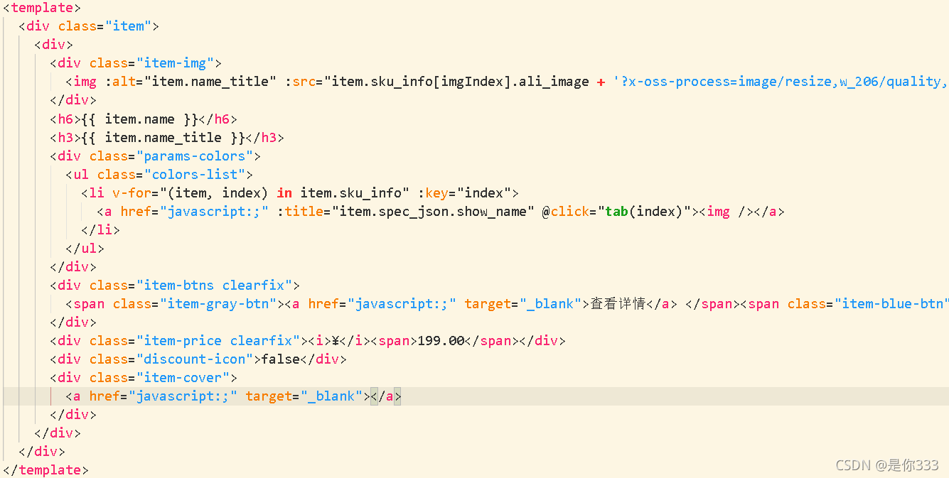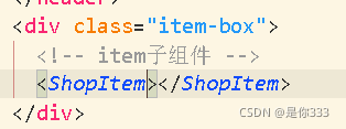 1.3、封装ShopItem子组件(方便用v-for指令渲染),新建shop-item文件夹,并在文件夹内新建shop-item.vue文件。将class名为item的标签下所有复制到shop-item.vue组件下