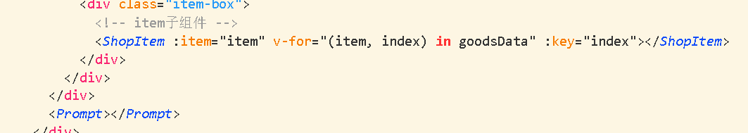 在ShopItem组件下使用v-for指令进行数据渲染,并设置key值。