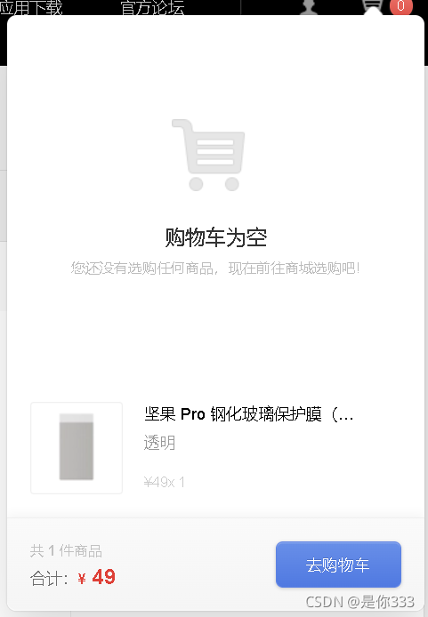 首先购物车默认不显示,需要在header.css文件309行改成如下