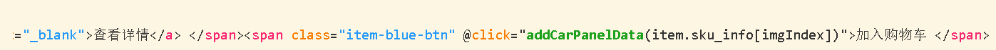 1.3、找到加入购物车的span标签,添加点击事件,使用该方法。并传入点击的该商品参数