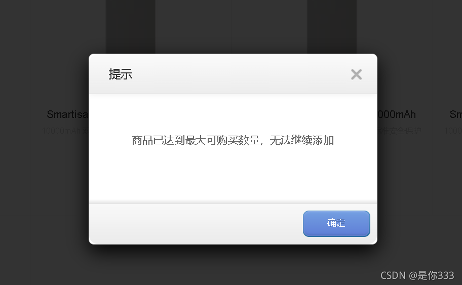 8.此时商品可以无限添加购物车,需要定义方法,让数量超过库存时,显示提示框