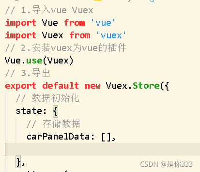 state节点创建名为carPanelData的空数组,用于接收添加的商品数据