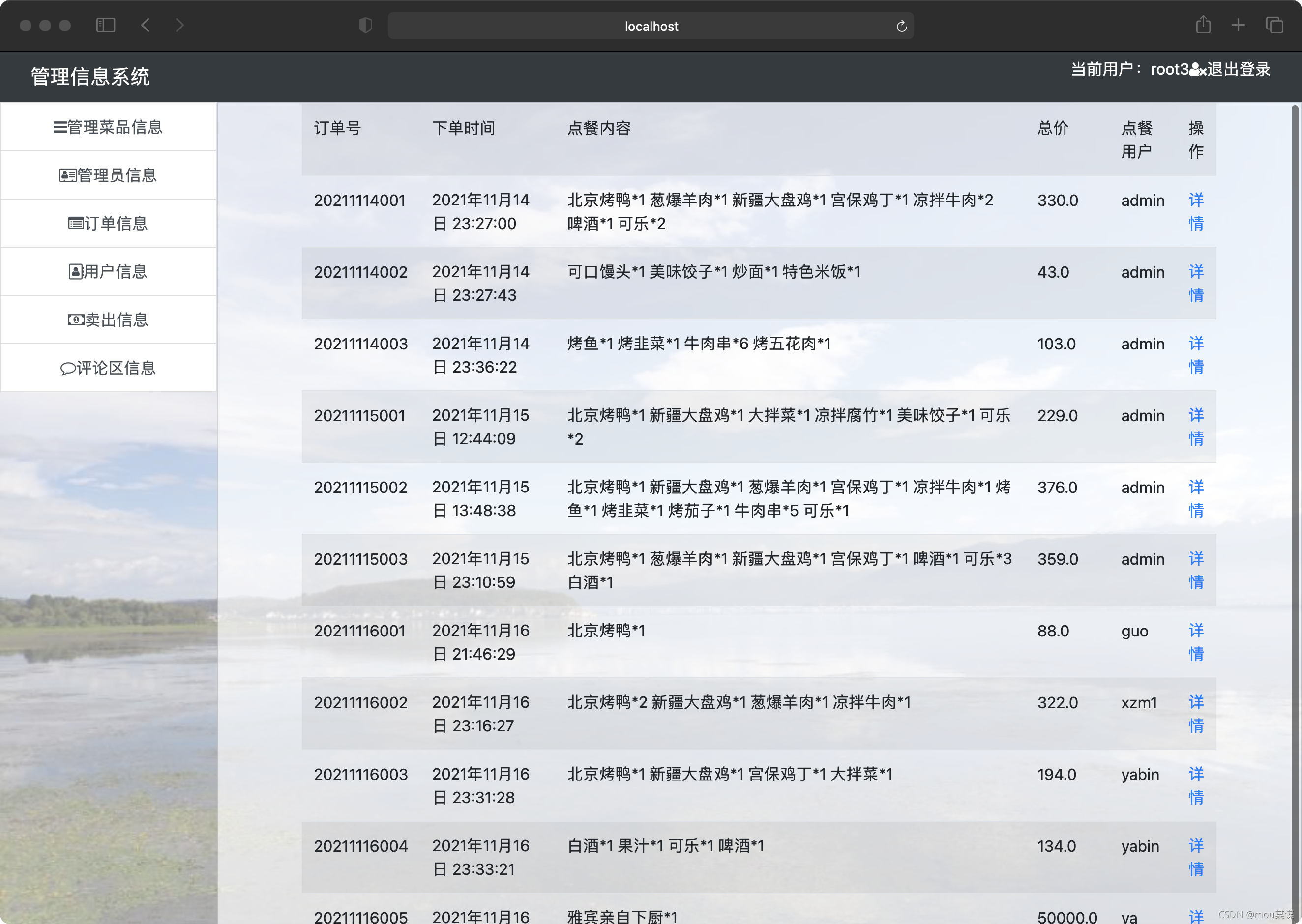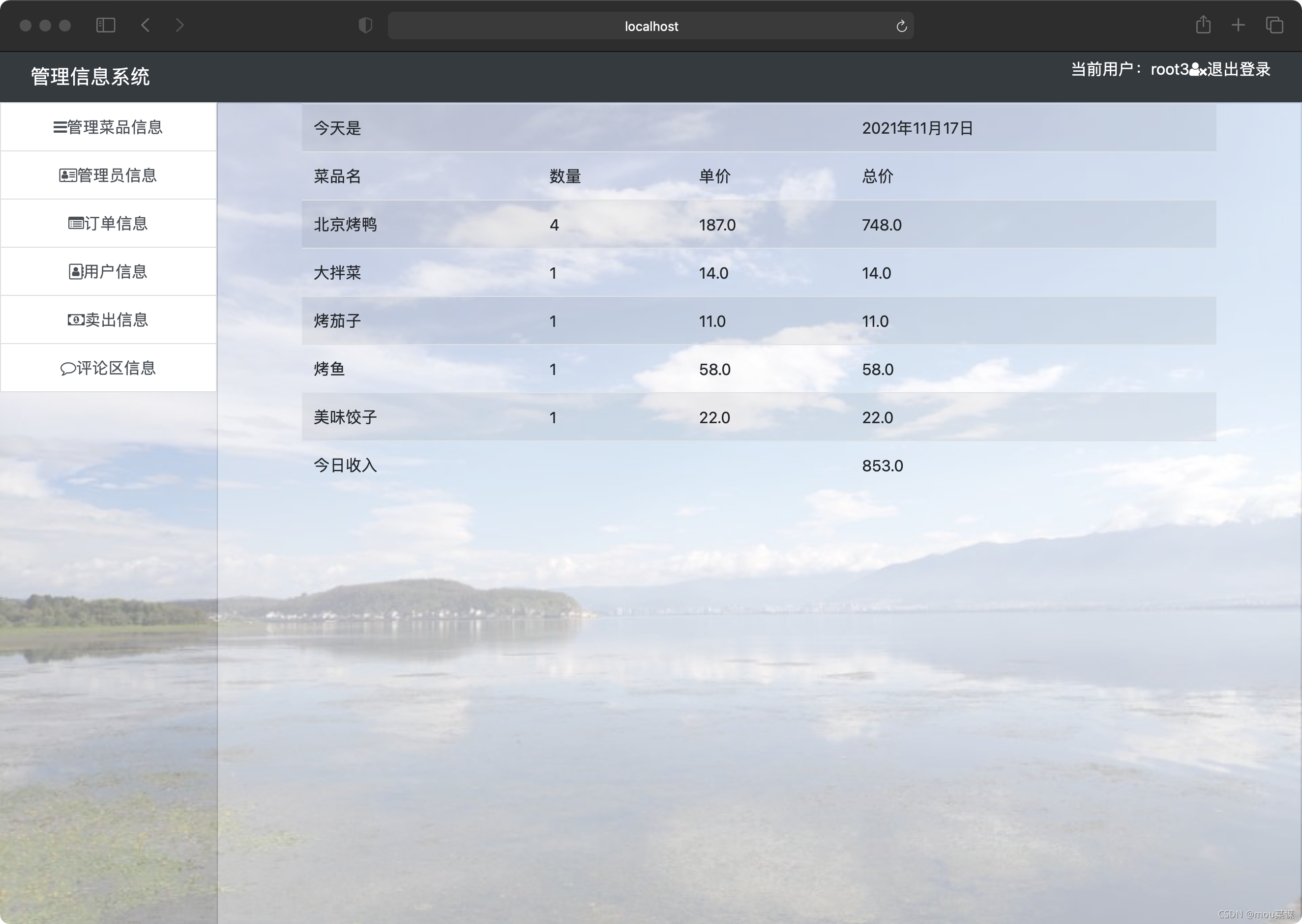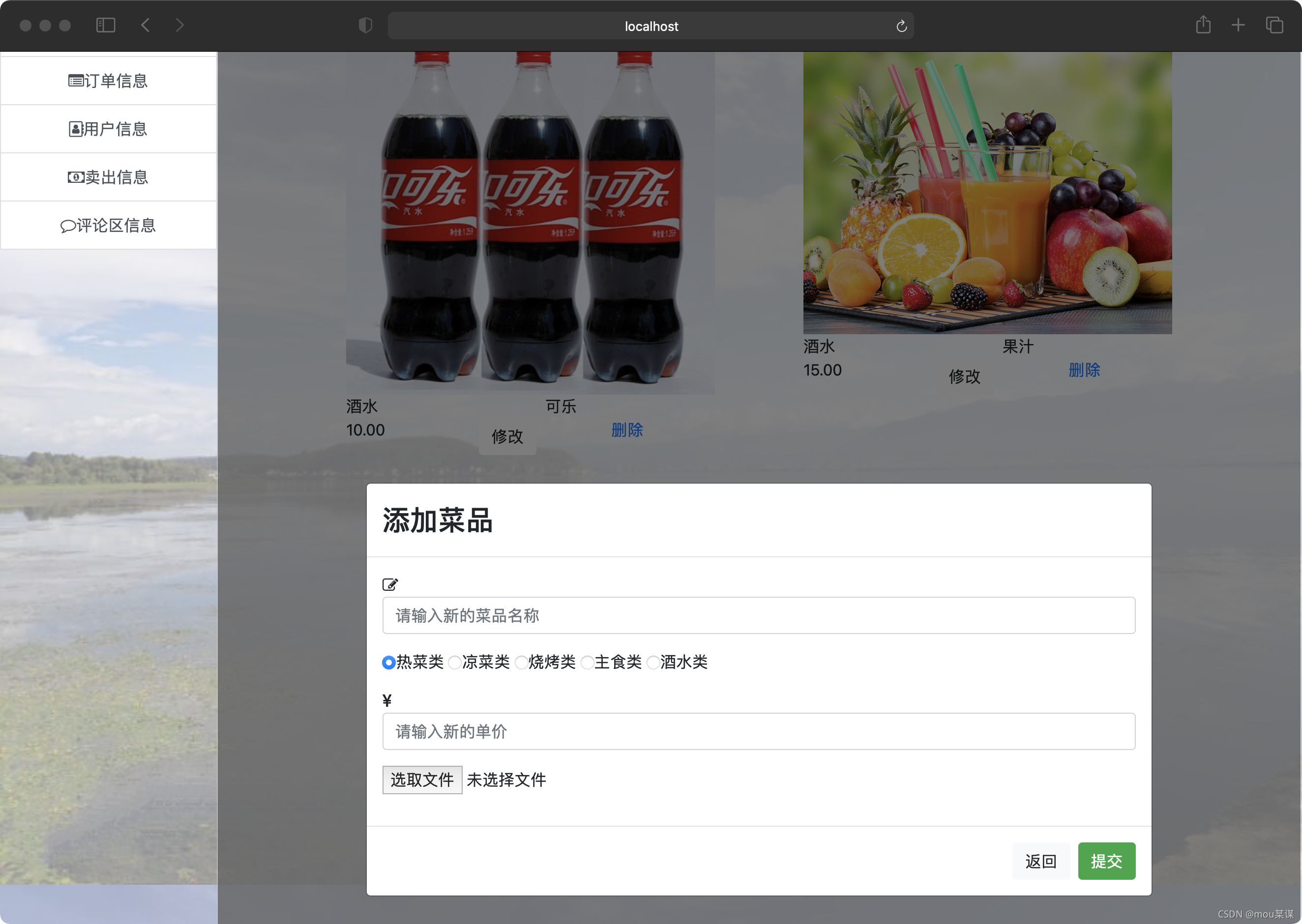 基于管理员的有添加和修改菜品,查看所有用户订单信息,查看并管理所有用户的评论,查看所用用户信息,管理个人管理员信息等